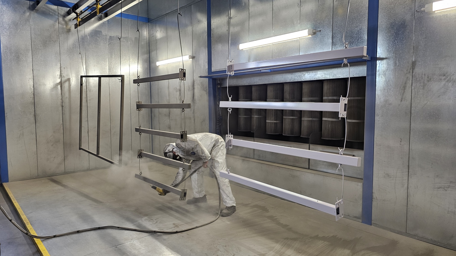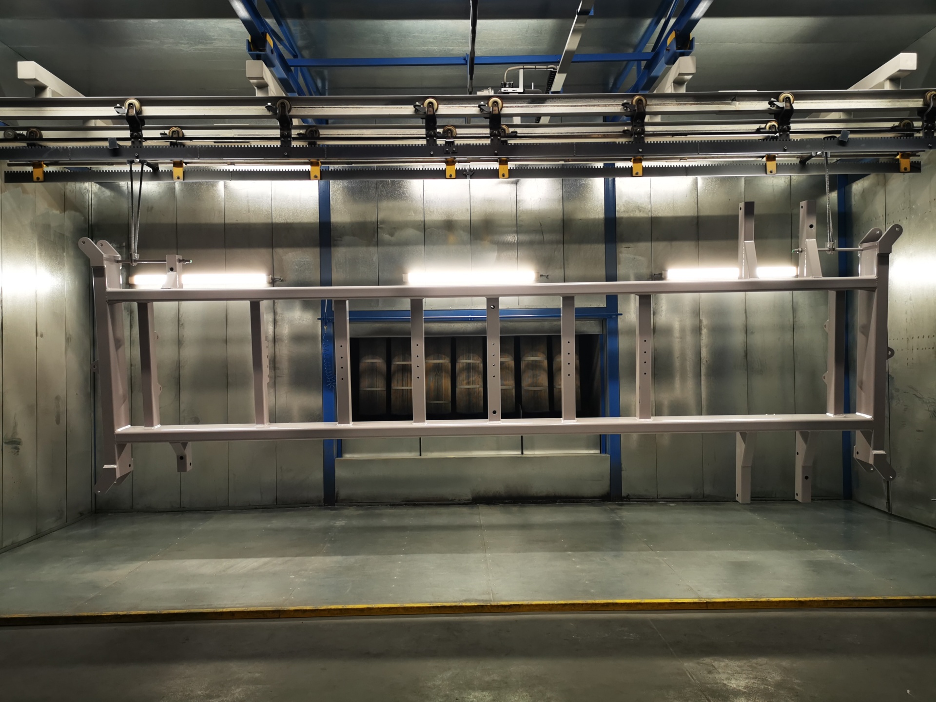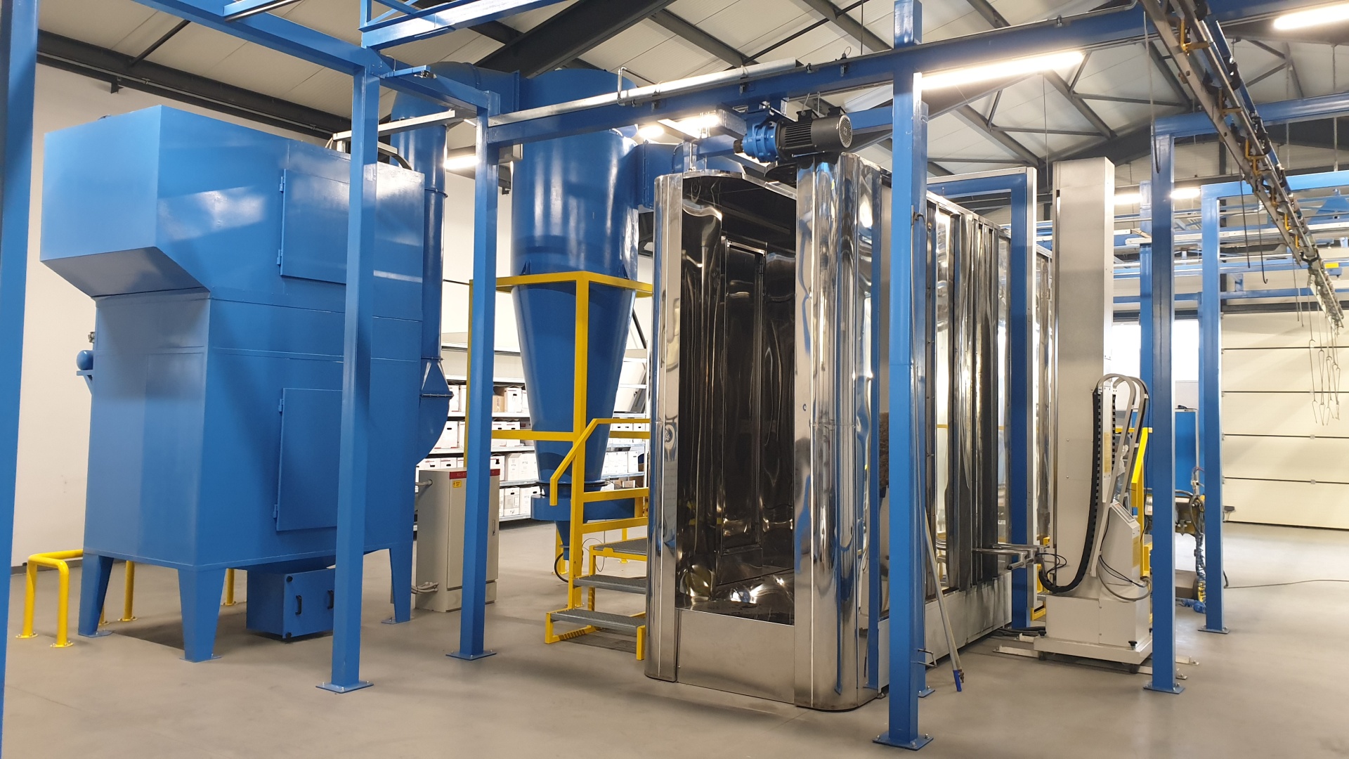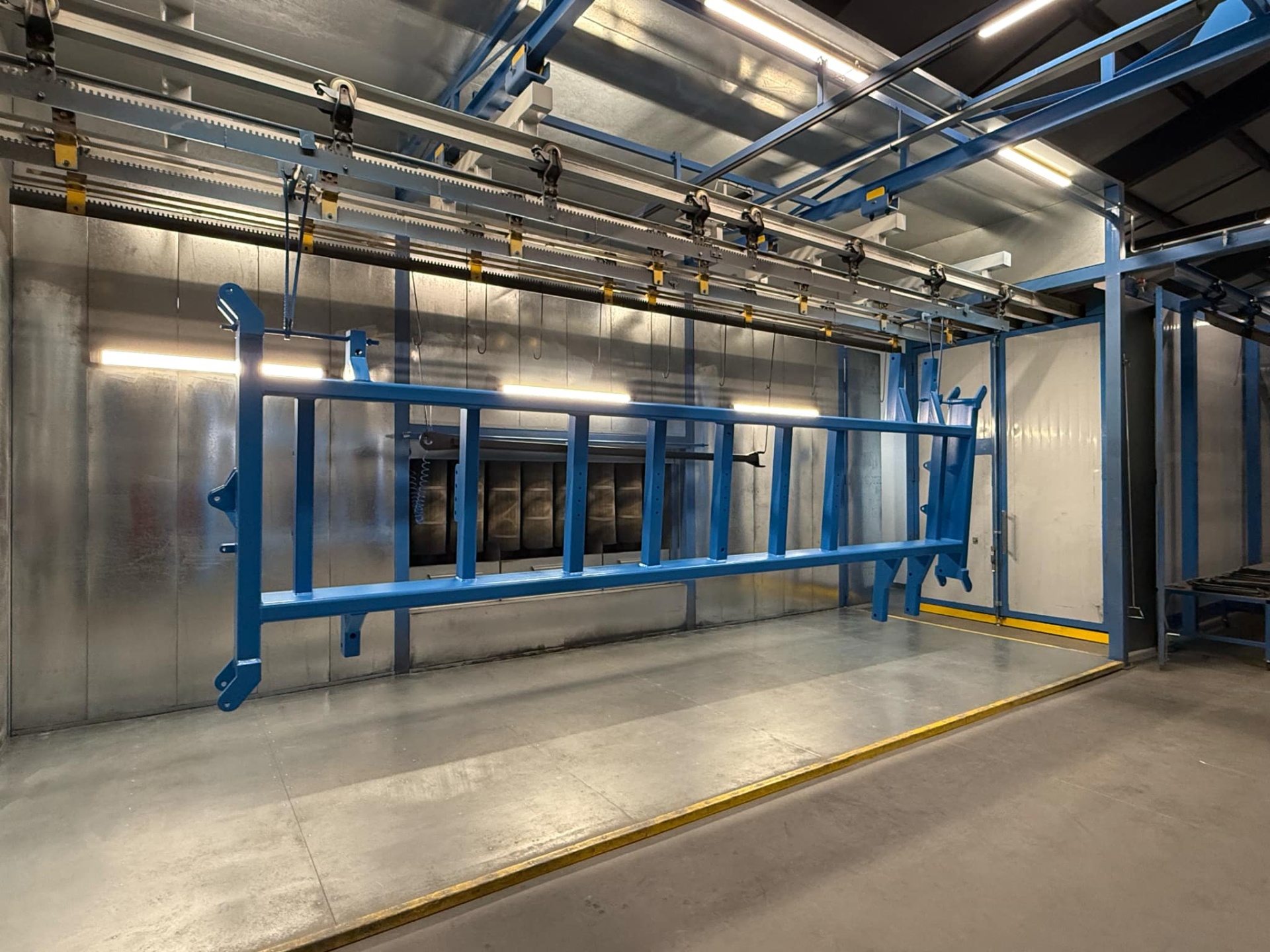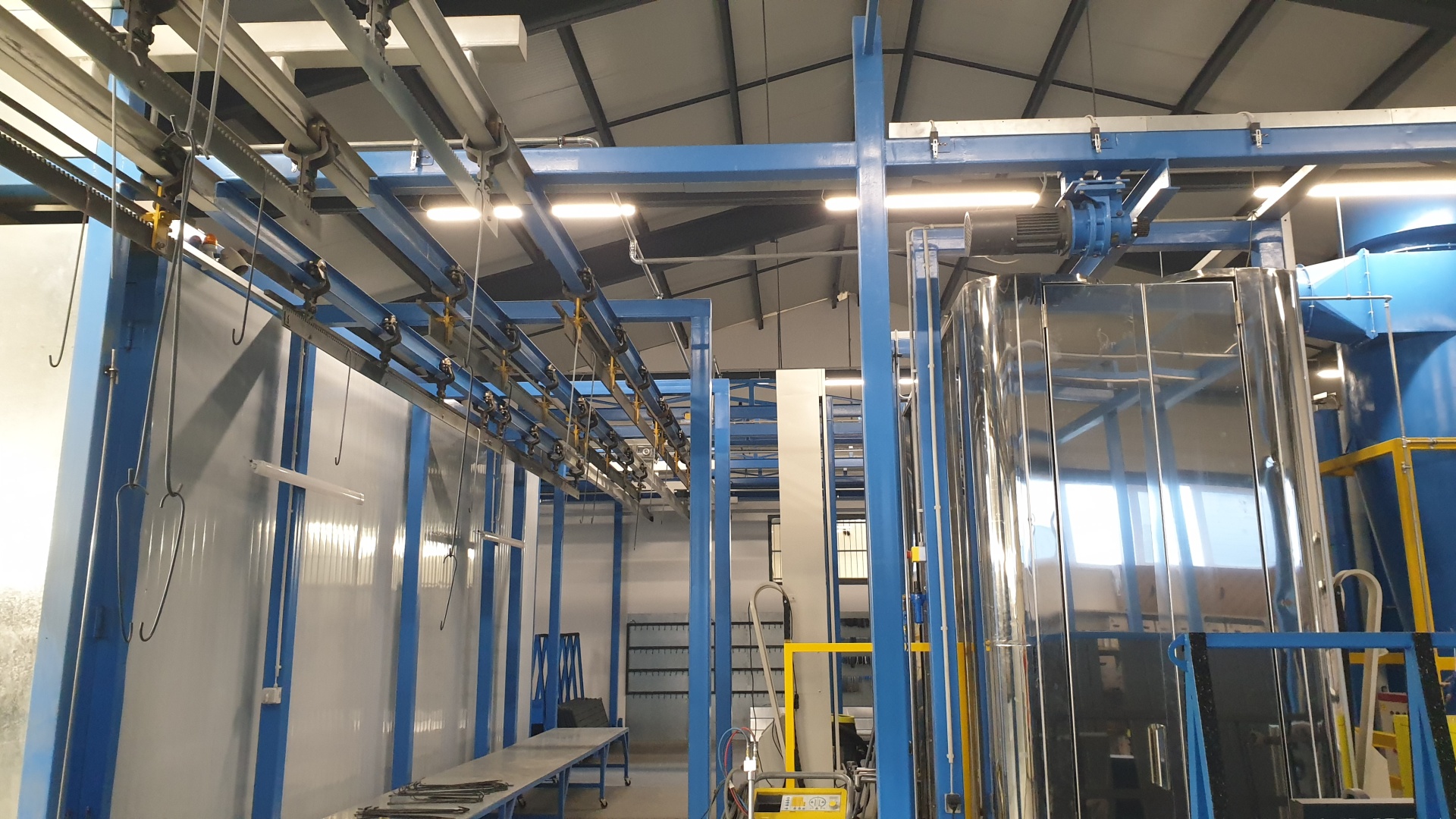 Az üzemben az egységek között az anyagmozgatás automata gépi konvejor rendszerrel működik, melyen az akasztékok súlya akár 1000 kg is lehet!